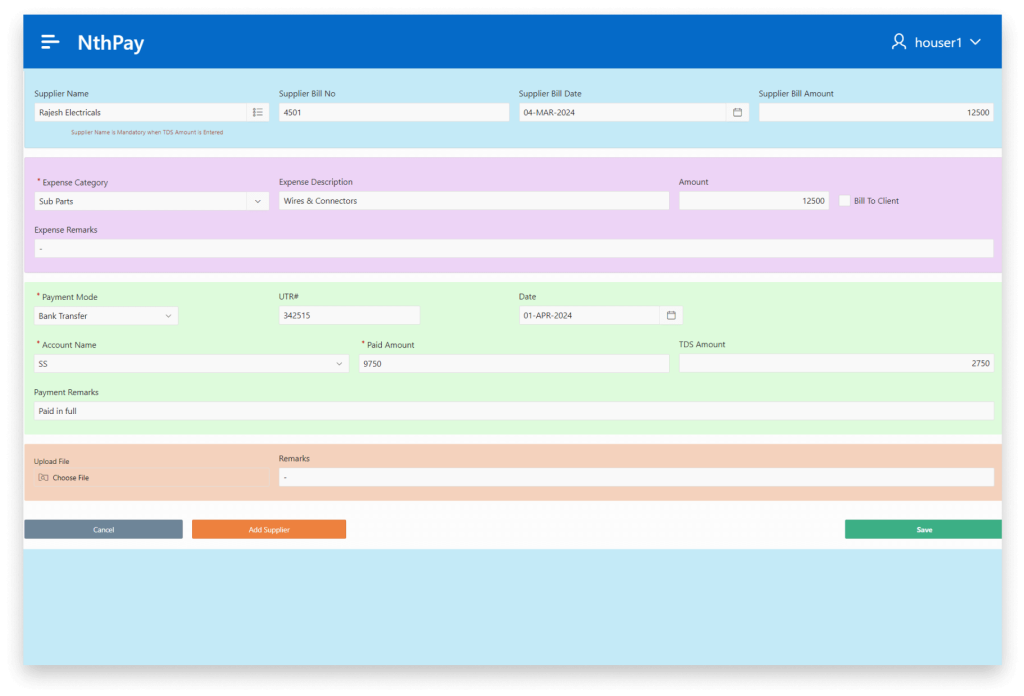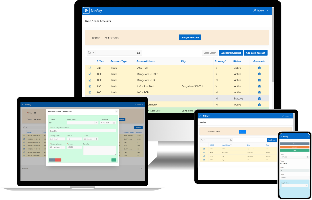 nthPay helps you in managing your expenses, vendor invoices, payments and fund transfers between bank accounts. With nth Pay you can manage branch expenses and project expenses independently.