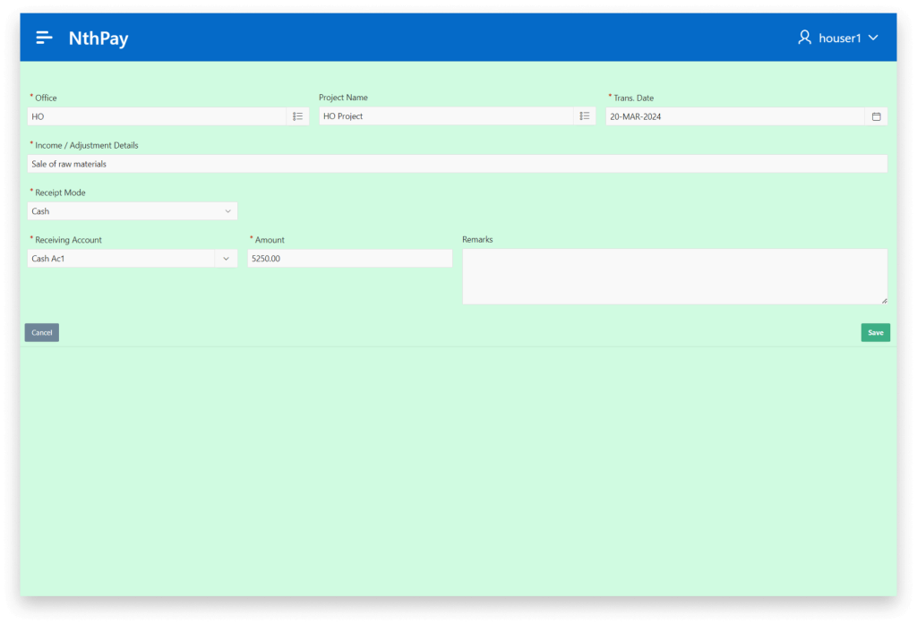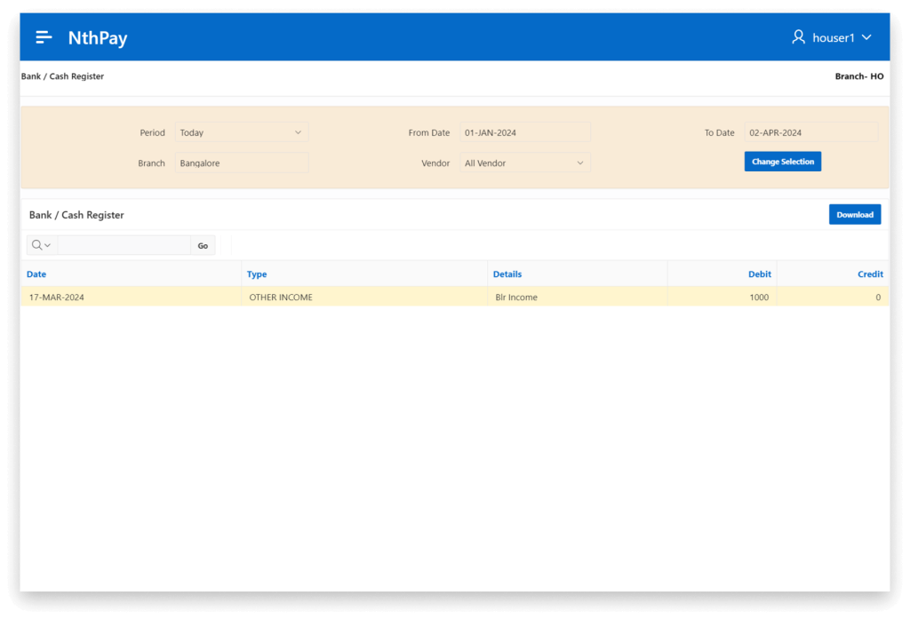 NthPay give you the facility to record incomes recieved at the branch level